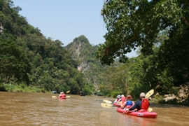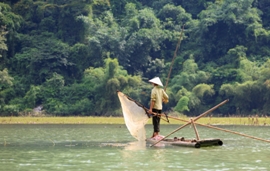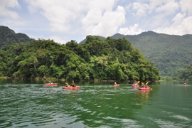 Cette journée sera consacrée à la découverte du lac Ba Be et de ses alentours en kayak. Vous rejoindrez l’embarcadère de Buoc Lom, d’où vous prendrez votre kayak pour démarrer la journée. Vous descendrez d'abord la rivière Nang où se trouvent les grottes Puong (selon la légende, un géant les aurait creusées à la main) jusqu’environ midi, pour la pause déjeuner à proximité des chutes Dau Dang.